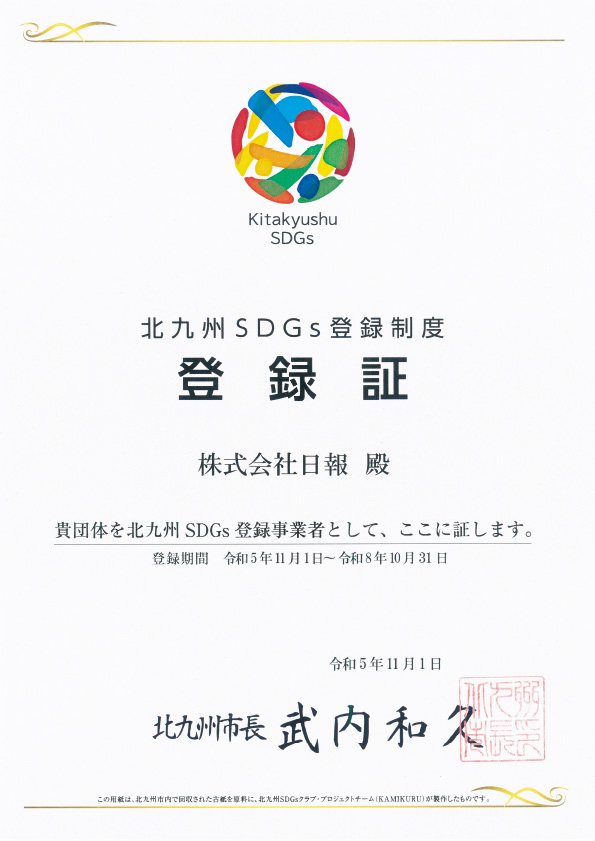 株式会社日報は、この理念に賛同し、環境配慮型の印刷や省エネルギー、地域貢献など、事業を通じた取り組みを進めています。